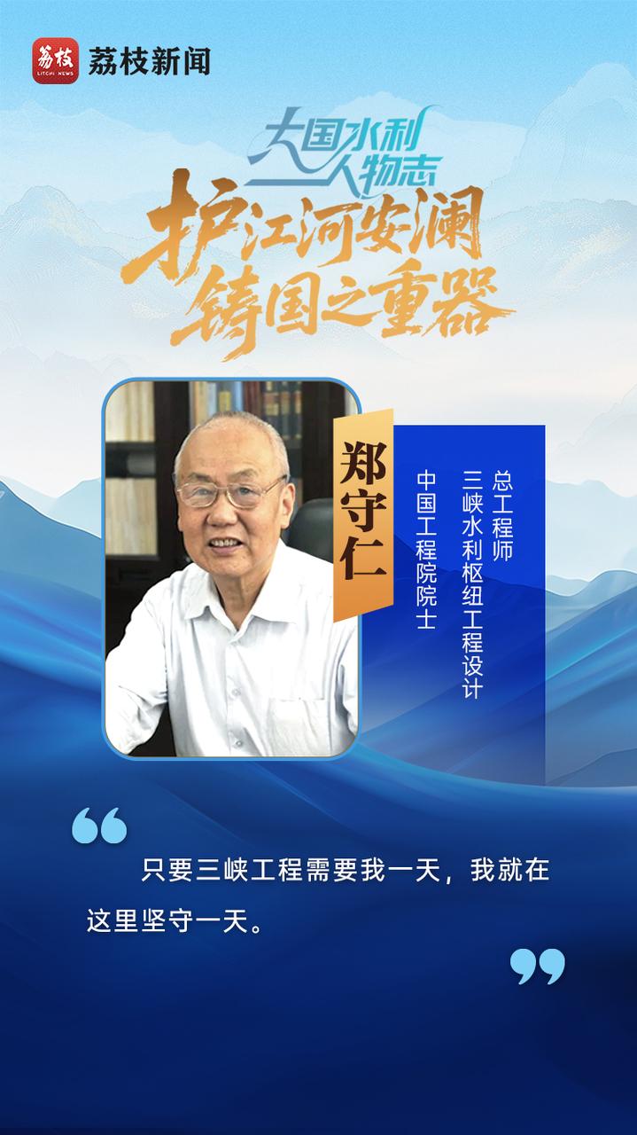 郑守仁是我国闻名的水利水电工程专家。他先后参加了陆水水库、乌江渡、葛洲坝、三峡等很多工程,终身都与水利结缘。1963年,23岁的郑守仁从华东水利学院(今河海大学)结业作业,至80岁高龄,57年如一日据守工地,被称为“工地院士”。他带领团队,三次成功处理截流长江的国际难题。他作为总规划师的三峡工程,有20多项经济技能指标名列“国际之最”。据不完全统计,仅三峡主体工程就节省出资3亿元。2020年7月,郑守仁因病去世,享年81岁。